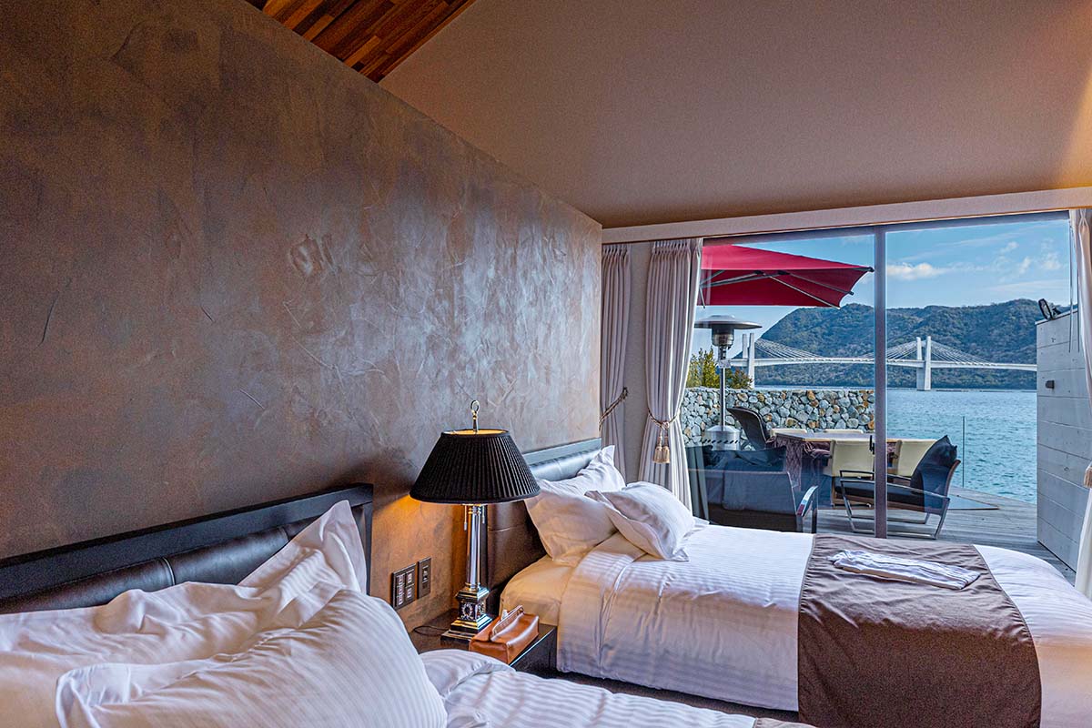 充実した客室設備でラグジュアリーなひと時をお楽しみいただけます。プールから眺める瀬戸内のサンセット、満天の星空を独り占めできるバルコニー。 ここでしか味わえない特別な時間をお楽しみください。