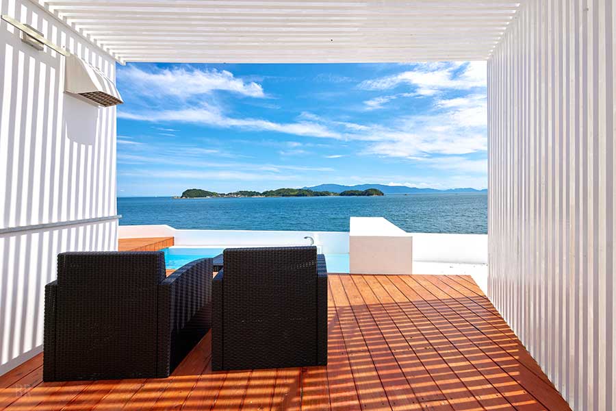 日生駅からの送迎サービスも利用できます。 日生大橋を渡って島へ。静かな空気の中で滞在が始まります。チェックインタイム。